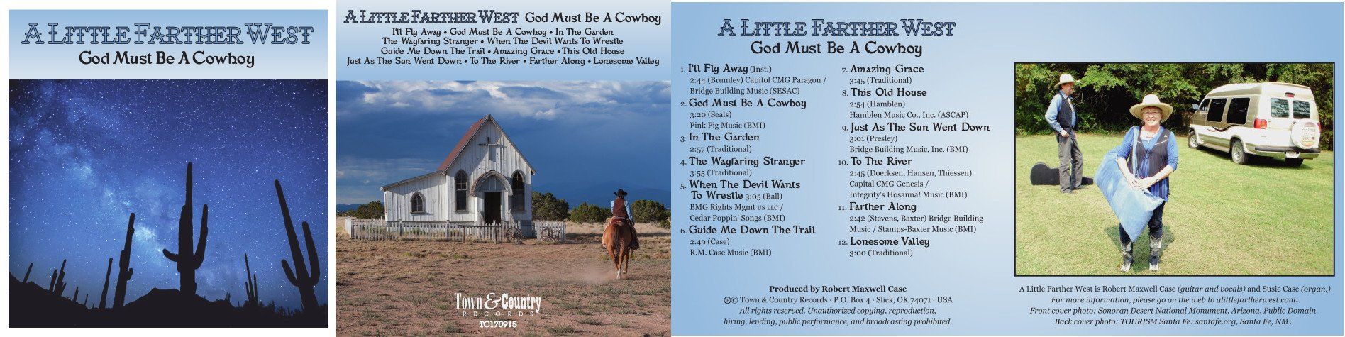 This Old House; Lonesome Valley; The Wayfaring Stranger; I'll Fly Away (inst.); In The Garden; Amazing Grace; Farther Along; Just As The Sun Went Down; God Must Be A Cowboy; When The Devil Wants To Wrestle; To The River; Guide Me Down The Trail. Click on cover to play.