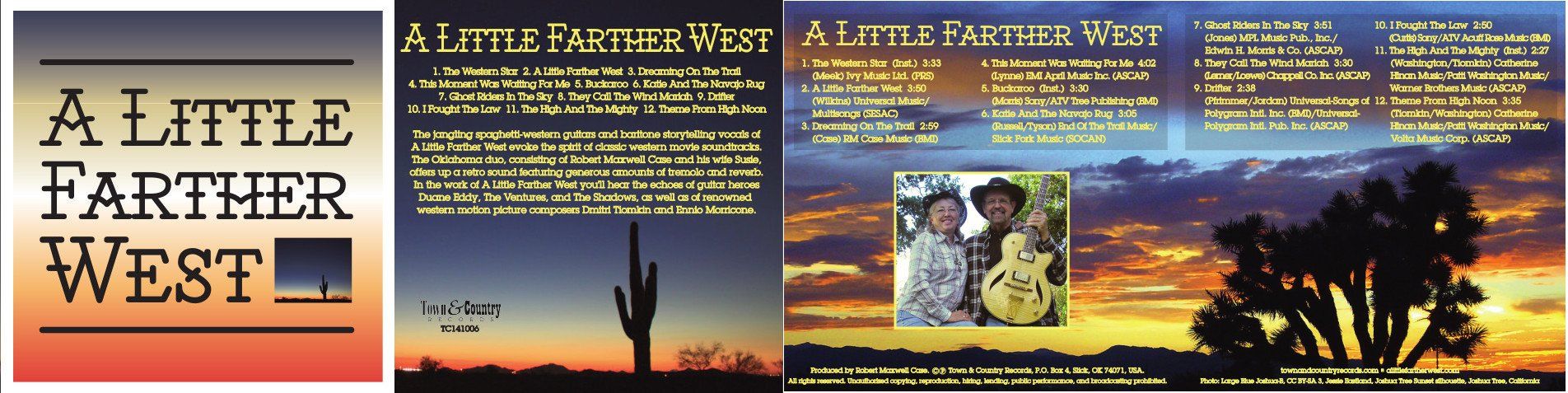 Oklahoma's A Little Farther West is a musical duo comprised of Robert Maxwell Case on electric guitar and vocals and his wife Susie Case on continental combo organ. The group's sound evokes the spirit of classic Western movie soundtracks, presenting a modern take on the cinematic instrumental and vocal styles of the mid-twentieth century.